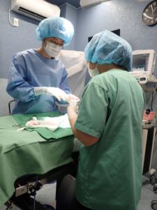 OPEに入る前段階のグローブテスト・手洗いテスト。